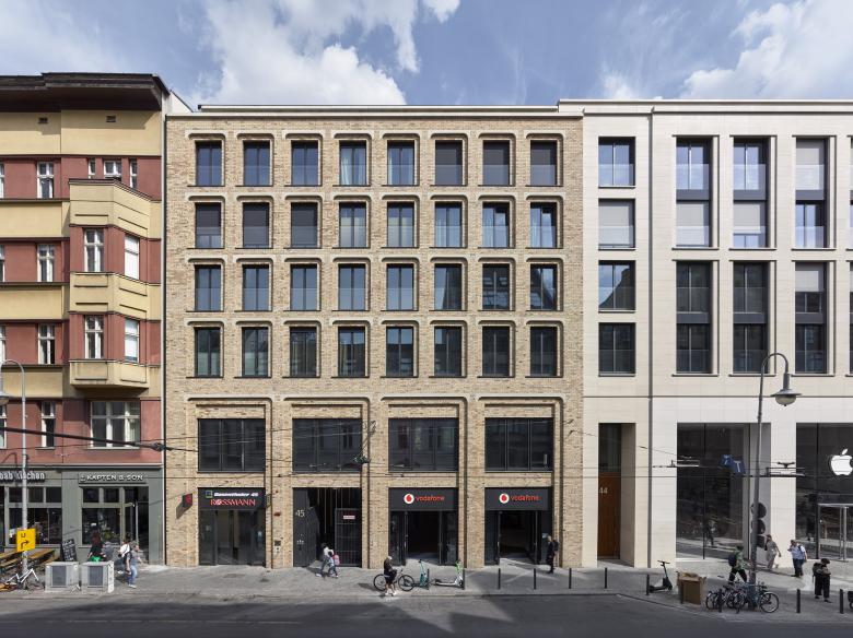 Das Scheunenviertel, Teil der Spandauer Vorstadt in Berlin–Mitte, ist als Szenequartier Anlaufpunkt für die internationale Modebranche, Mobilfunk-, Elektronik- und IT-Unternehmen, kreative Startups und bekannt für sein vielfältiges Gastronomie- und Kulturangebot. In der Rosenthaler Straße 43-45 unmittelbar gegenüber dem Jugendstilensemble der Hackeschen Höfe entstand auf 15.000 m² Bruttogrundfläche ein moderner, dreigliedriger Neubau in Stahlbetonbauweise mit sieben oberirdischen Geschossen und zwei Untergeschossen, der den umliegenden Nutzungsmix des Quartiers aus Wohnen, Gewerbe und Büro aufgreift und ergänzt. Die unterschiedlichen, detailreichen Fassaden der drei Gebäude nehmen direkten Bezug auf die historische Parzellierung des Baugrundstücks.