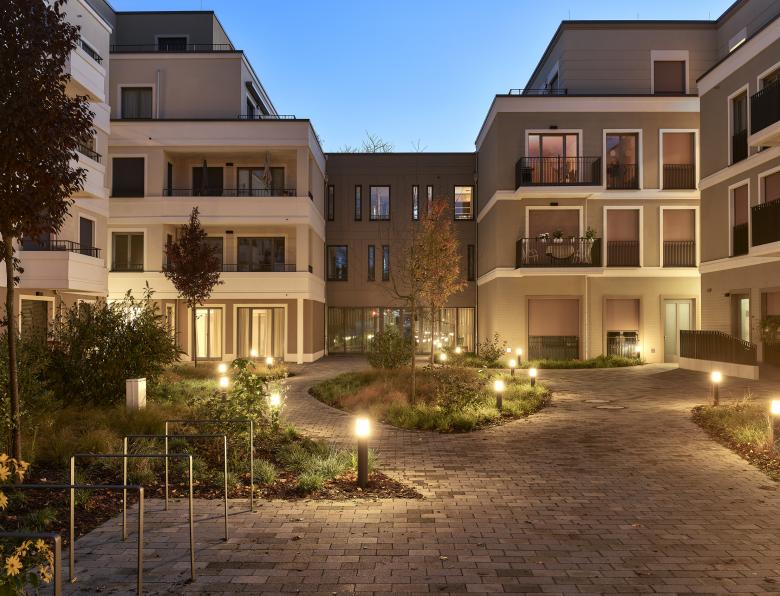 Zusätzlich zu den seniorengerechten Wohnungen wurde ein breites Serviceangebot für die Bewohnerinnen und Bewohner geschaffen, so beispielsweise im U-Förmigen Gebäude am Riviera-Saal ein großzügiger Empfang mit Concierge, Gastronomie, Räume für Fitness und Wellness inklusive eines Schwimmbads, sowie Gemeinschaftsräumen. Eine ambulant betreute Wohngemeinschaft und eine Tagespflege in den gegenüberliegenden Bauteilen runden das Angebot im Quartier ab.