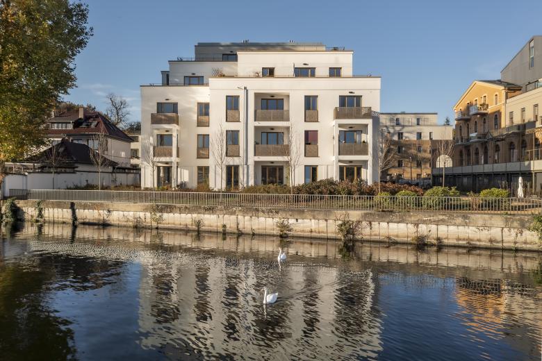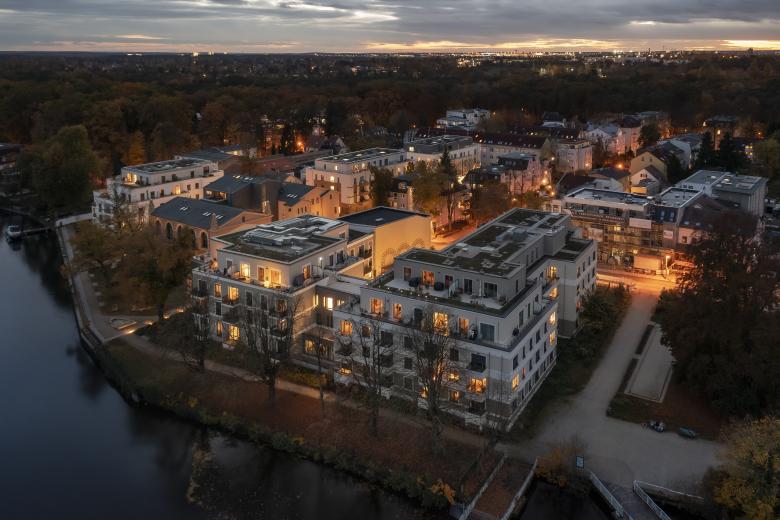 Das Neubauprojekt Vitalresidenz Riviera befindet sich in idyllischer Lage an der historischen Olympia-Regattastrecke in Berlin-Grünau, eingerahmt von einer gepflegten Gartenanlage mit Uferweg. Unter Erhalt des historischen Riviera-Ballsaals und der Fassade des ehemaligen Gesellschaftshauses Grünau, beide aus dem ausgehenden 19. Jahrhundert, entstand auf dem Grundstück an der Dahme und einem straßenseitigen Grundstück an der Regattastraße eine moderne Seniorenanlage mit über 200 barrierefreien Wohnungen. Zur Wasserseite wurden von TCHOBAN VOSS Architekten zwei Neubauten geplant, zwei weitere auf dem landseitigen Grundstück. Mit ihrer Architektur führen die vier Häuser durch differenzierte Fassaden die gestalterische und typologische Heterogenität der Nachbarschaft bewusst fort. Für die aufwendige Sanierung der denkmalgeschützten Bestandsgebäude zeichnen sich van geisten.marfels architekten aus Potsdam verantwortlich.