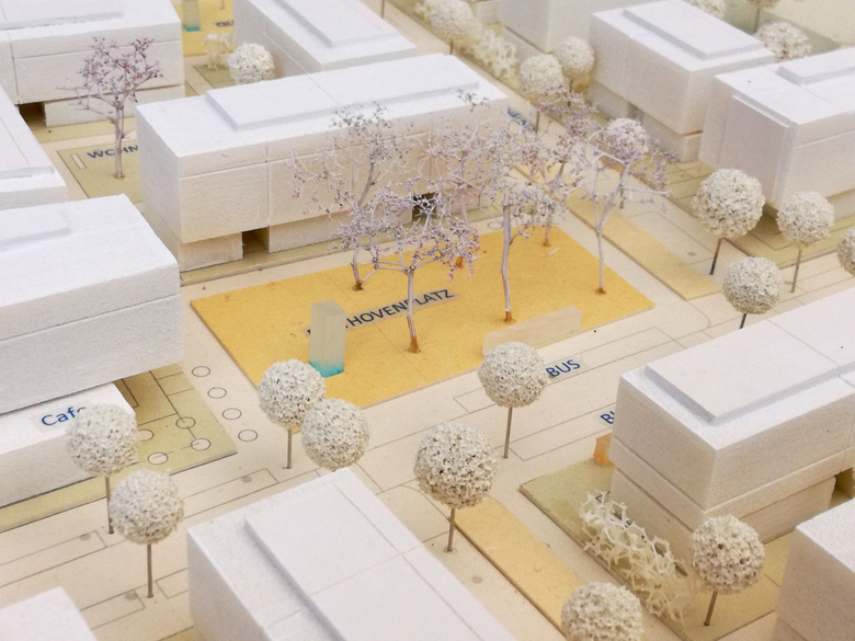 Beidseits der Beethovenstraße entstehen zwei eigenständige Nachbarschaften mit jeweils adressengebenden Quartiersplätzen. Schwerpunkt und Bindeglied des neuen Quartiers ist jedoch der Beethovenplatz an gleichnamiger Straße, auf den sich alle wesentlichen Gemeinschaftseinrichtungen konzentrieren. Von diesem zentralen Ort ausgehend sind die beiden Nachbarschaftsplätze über kurze Wohnstraßen erreichbar. Alle drei Platzräume liegen im Schnittpunkt von Nord-Süd- und Ost-West-gerichteten Wegeverbindungen, die das neue Beethovenquartier mit seinem Umfeld vernetzen.