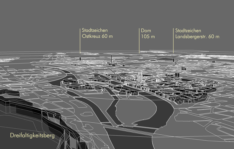 Ergebnis der Planungsstudie war, über konkrete Planungsvorschläge für profilbildende Orte hinaus, eine strategische Konzeption als Leitbild für die künftige periphere Stadtentwicklung in Wechselwirkung zur historischen Altstadt.