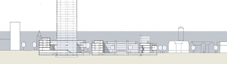 Entwurf für die Wiederbebauung der Innenstadt, Integrierung des Henselmann-Turmes (Bestand)