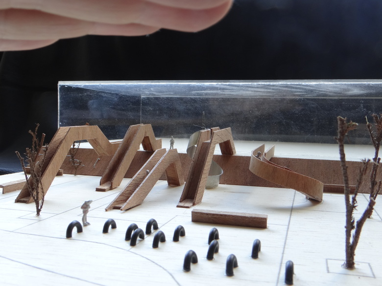 The playground apparatuses we proposed for a kindergarten that houses more than 1,000 children in Ribeirão das Neves (MG, Brazil) have their imagined forms as the translation of the movements and games they sponsor: ramps, nets, ladders and climbs here are a departure point to imagine other ways to slip, climb, hide, swing, descend, go up. They are also an economically viable alternative to traditional catalogue toys and are intended to be more durable and more thought-provoking than the products on the market.