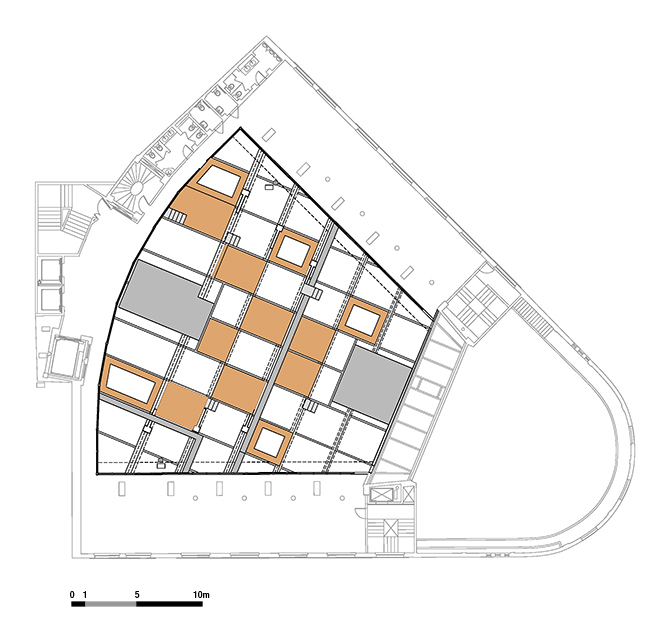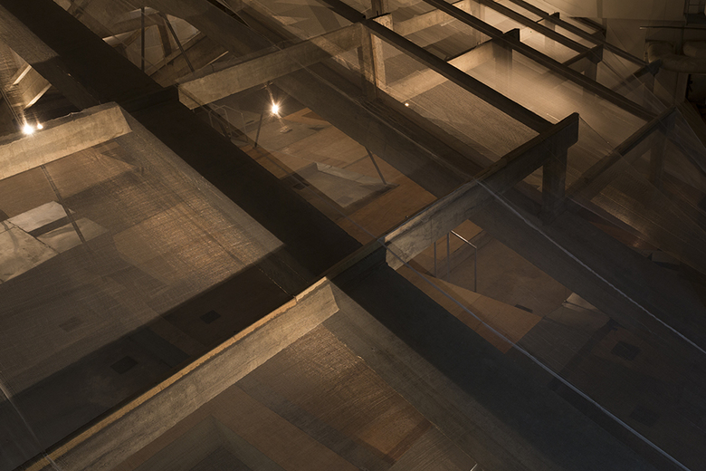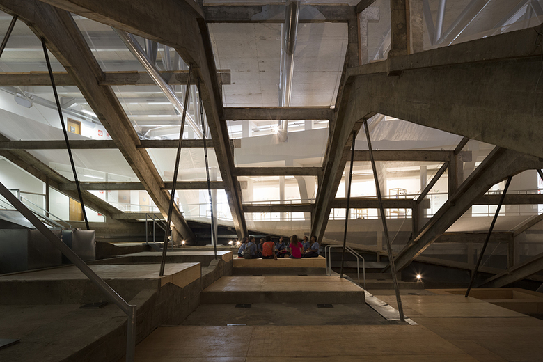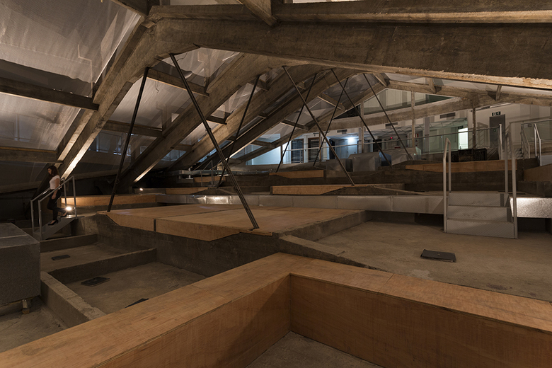 Structural Archeology sought to activate this imaginary place, coating the roof framework with a translucent screen, and turning the bleak void into a habitable place. Articulated as a structural archeology exercise, the proposal revisits and recalls the original 1932 architectural design, and recovers the stepped roof which once covered the audience. Timber tableaux were structured over the supporting beams, recreating the experience and the values of a livable space that now works as an enabler of events.