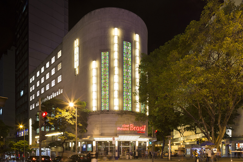 Owner of the title of Brazil’s largest cinema for a few years, Cine Theatro Brasil was built in 1932 at an important intersection in the Center of Belo Horizonte, called 7 Square. Heavy and elegant at once, its Art Déco volume was one of the largest buildings in the city; it was followed in the 1950s by two other iconic buildings: Banco Lavoura (Álvaro Vital Brazil, 1950) and Banco Mineiro (Oscar Niemeyer, 1953).