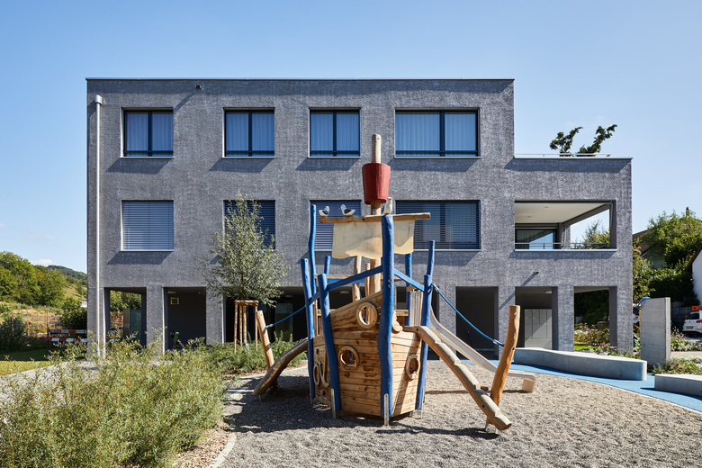 Auf dem Grundstück der ehemaligen Fischzucht Zeiningen in der Mühlegasse entstand die Überbauung „Bim Mühlirad Zeiningen“ mit Eigentumswohnungen. Wie der Projektname verrät, existiert auf dem Grundstück noch ein traditionelles Mühlirad im Möhlinbach, welches der Überbauung in der Umgebungsgestaltung erhalten bleibt. Die Überbauung ist gegenüber der bestehenden Nachbarschaft zweigeschossig ausgestaltet und fügt sich harmonisch in das Quartier ein. Beim Fassadenputz wurde mittels spezieller Technik das Schimmern der Fischschuppen interpretiert. In den drei Neu-baugebäude befinden sich insgesamt 13 grosszügig Eigentums-wohnungen mit 3.5 bis 5.5 Zimmern. Alle Wohnungen verfügen über grosszügige Aussen- sowie Fensterflächen und bieten lichter-füllte Räume und eine hohe Wohnqualität. Die Häuser entsprechen den neusten energetischen Vorschriften und sind im Standard be-reits hochwertig ausgestattet. Die Überbauung zeichnet sich durch die gemeinsame Autoeinstellhalle mit direktem Zugang zu den je-weiligen Häusern sowie die Photovoltaikanlage, mit der sie ihren ei-genen Strom produziert, aus.