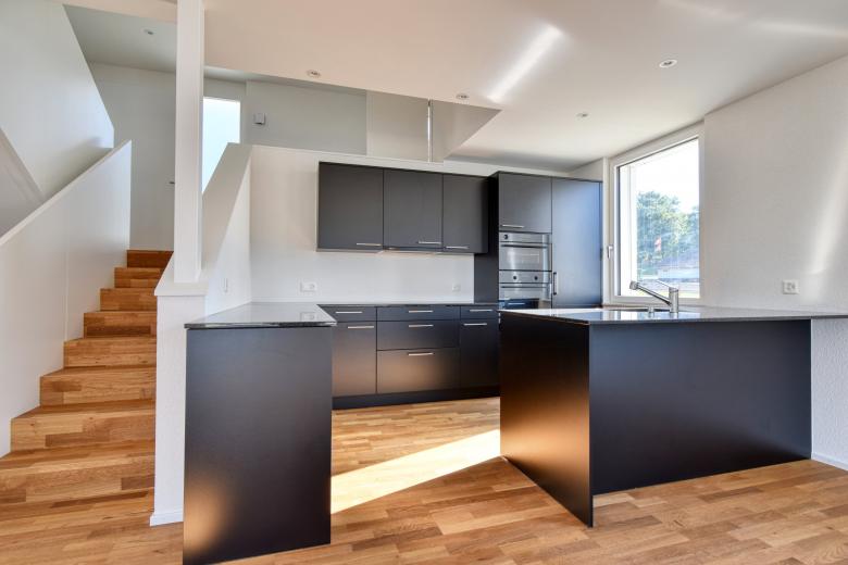 Am nördlichen Siedlungsrand von Schupfart, in leichter Hanglage, liegt die ansprechende Überbauung „4 Linden“, bestehend aus einem Mehrfamilienhaus mit 2 Wohnungen, verteilt auf 2 Etagen, sowie einem Doppeleinfamilienhaus und bietet somit ein Zuhause für Alt und Jung. Beide Gebäude sind durch eine gemeinsame Tiefgarage erschlossen, welche sich, dank der direkten Zufahrt ohne Rampe, nahtlos in die Umgebung einfügt. Die Gegebenheiten vor Ort wurden optimal genutzt. So wurde die Überbauung beispielsweise durch das neu entstehende Fernwärmenetz erschlossen. Die Planung dafür erfolgte in enger Zusammenarbeit mit dem AEW und die Anlage kann 2024 erfolgreich in Betrieb genommen wer-den. Auch der Innenausbau wurde schlicht und modern gestaltet und wirkt auch in Kombination mit den individuellen Käuferwünschen zeitlos und elegant.