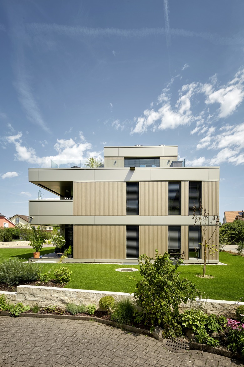Direkt am Rhein entsteht ein markanter Holzbau mit einem präzis gesetzten Volumen. Der reine Holzbau ist Minergie-A (als erstes Gebäude in Rheinfelden) zertifiziert und garantiert mit grosszügigen Grundrissen und Öffnungen ein angenehmes Raumklima. Die zwei Vollgeschosse richten sich an den Strassen- und Sichtachsen aus, das Attikageschoss verbindet die zwei Körper. Das Mehrfamilienhaus ist ausgestattet mit natürlich belichteten Nasszellen, komfortablen Eingangsbereichen und schönen Aussenflächen. Die Fenster sind in das Fassadenbild integriert und fügen sich selbstverständlich ein. Im Untergeschoss befindet sich eine grosszügige Einstellhalle mit Parkmöglichkeiten für die Bewohner und die Nachbarn zweier angrenzender Liegenschaften. Der oberirdische Bau ist komplett aus vorgefertigten Holzmodulen erstellt, was eine Verkürzung der Bauzeit erlaubte. Ein innovatives Projekt mit hohem technischem Standard und moderner Erscheinung.