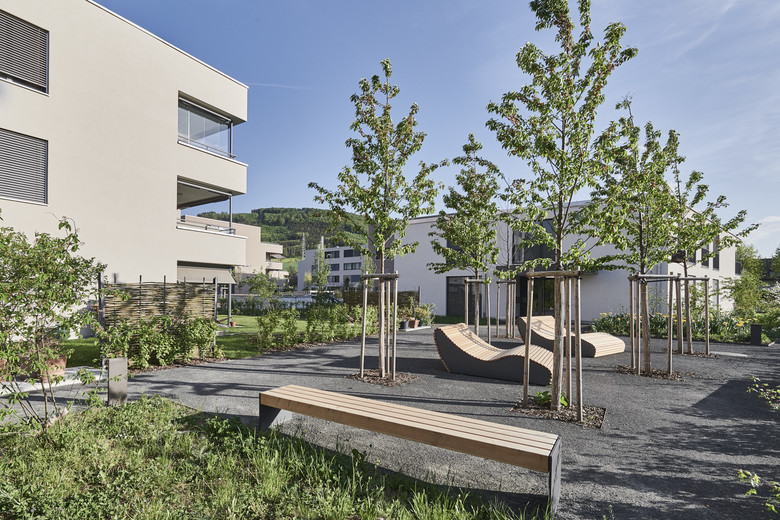 Grosszügige Fensterflächen belichten die 26 attraktiv geschnittenen Eigentumswohnungen. Die ansprechend gestaltete Umgebung sowie die attraktive Lage tragen zusätzlich zur hohen Wohnqualität der Überbauung "Römergarten" bei.