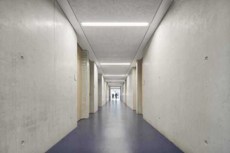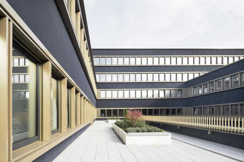 Das neue Polizeiämtergebäude positioniert sich in klar umrissener höhengestaffelter Kontur entlang der Karlsbader Straße im Südwesten Passaus und stellt eine ordnende Struktur im städtebaulichen Umfeld her. Um das umfangreiche und komplexe Raumprogramm zu gliedern und den Polizeihof mit den Fahrzeugen nicht in den öffentlichen Raum hineinwirken zu lassen, sieht unser Entwurf das Konzept einer Hoftypologie vor.