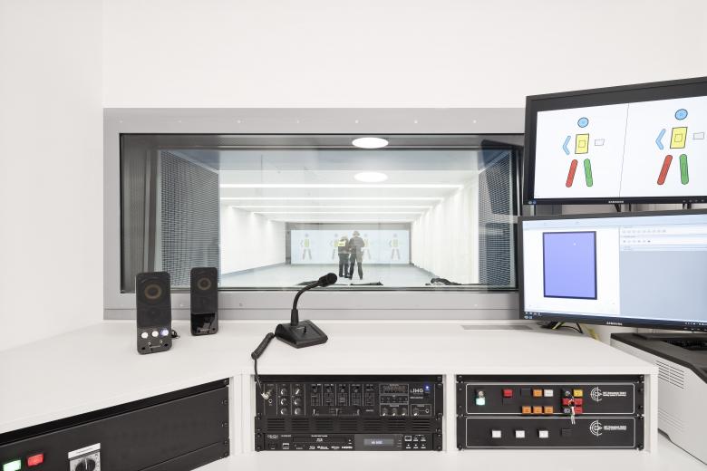 Maßstäblichkeit und Ausformung des Neubaukomplexes, der fünf Dienststellen an einem Standort zusammenführt, entsprechen dabei seiner übergeordneten Bedeutung. Die Baukörper gehen mit ihrer Höhenstaffelung einen optisch spannungsvollen Dialog mit dem Geländegefälle des langgezogenen, leicht geknickten Grundstücks ein und werden so auch zu einer zeichenhaften Baufigur zusammengebunden. Eine Freitreppe führt zu einem adressbildenden Unterschnitt, wo sich der Haupteingang befindet. Im Hauptgebäude sind die Räumlichkeiten der fünf Polizeidienststellen (Polizeiinspektion, Kriminialinspektion mit der neuen Abteilung Cybercrime, Grenzpolizeiinspektion, zentrale Einsatzdienste, technische Einsatzdienste) sowie die zentralen Räume für den Polizeibetrieb zoniert angeordnet. Der öffentlich zugängliche Bereich befindet sich im Erdgeschoss. Zwei Höfe gliedern das Gebäude und belichten die Innenräume; einer dient auch als Aufenthaltsfläche für das Personal. Die Kantine sowie Stellplätze für Dienst-, Einsatz- und Besucherfahrzeuge sind im Nebengebäude angeordnet.