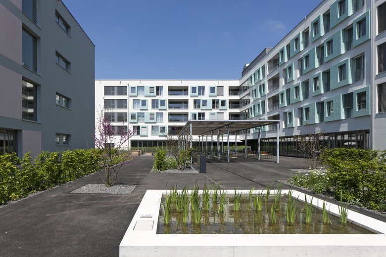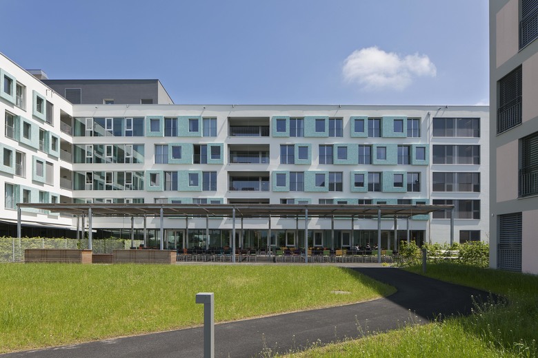 Das Gesamtprojekt wird von zwei Bauträgern erstellt. Die Betagtenzentren Emmen AG erstellt das Pflegeheim mit dem Verwaltungsbau, die Suva finanziert die dazugehörigen Alterswohnungen. In der grossen Weite des Emmenfeldes wird ein Ort der Identfikation geschaffen, indem die beiden Baubereiche zwei Aussenraumkammern bilden: Einen Innenhof zum Betagtenzentrum und einen Wohnhof zu den Alterswohnungen. Diese beiden Höfe sind sowohl vom inneren Korridorsystem aus erlebbar, als auch vom Spazierweg im Freien. Alle Gebäude sind wettergeschützt miteinander verbunden und trotzdem erscheinen die Alterswohnungen als autonome Einheiten mit separater Adressierung.