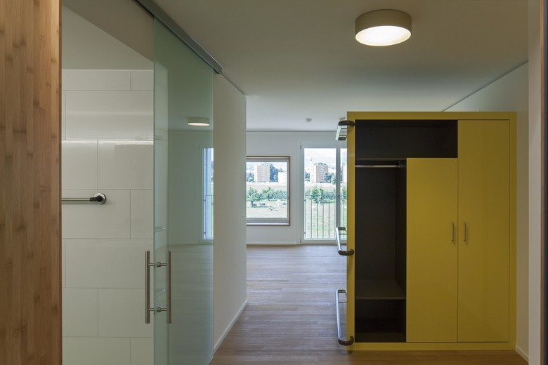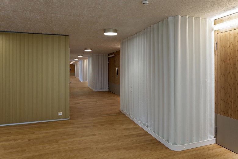 Die Zimmer sind wie eine kleine Welt für sich geplant, indem sie eine Eingangszone und eine Aufenthalts- respektive Wohnzone anbieten. Dadurch ist es möglich, der Nachtzone eine erhöhte Intimität zu geben. Die Nasszellen liegen Rücken an Rücken.