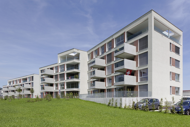 Die 30 Mietwohnungen in einem Mix von 21⁄2 Zimmer Wohnungen bis 51⁄2 Zimmer Wohnungen liegen entlang der Motelstrasse in Kriens und sind die 2. Etappe der bereits gebauten Siedlung Schellenmatt. Der Richtungswechsel wird mit einer leichten Grundrissverstaffelung veranschaulicht. Auch im Aufriss gibt es eine Verstaffelung, die den Übergang zu den angrenzenden Einfamilienhäusern schafft. Alle Wohnungen sind Ost-West durchorientiert. Den Wohn-Essbereichen sind eingezogene und ausgestülpte Aussenbereiche zugeordnet, Terrassen-Loggien; die einen zurückgezogenen Aufenthalt ermöglichen und gleichzeitig auch ein Austreten aus der Gebäudehülle auf eine Aussichtskanzel zur schönen Aussicht ermöglichen. Das äussere Erscheinungsbild orientiert sich an der ersten Etappe Schellenmatt, weist aber gleichzeitig einen eigenen Charakter auf. Zierelemente aus Flachverblendern in Backsteinoptik fassen die Fenster zu Bändern zusammen. Westseitig wird das Volumen fast zu einem Skelett aufgelöst - ostseitig bleibt die Fassade geschlossener.