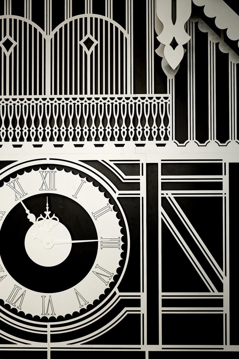 Restaurant 1683, a tribute to Gaggenau‘s 333rd anniversary year, is the first in a series of events of a three-year campaign. With a four-night pop-up at the Chelsea Art Beam gallery, the restaurant brings a epicurean journey to the brand´s origin, to Manhattan. The invite-only experience starts with a trip 333 years back. Guest are greeted in an entry with a ceiling height 3-dimensional cut out of a Black Forest chalet cuckoo clock flanked by three ladies in traditional costume.