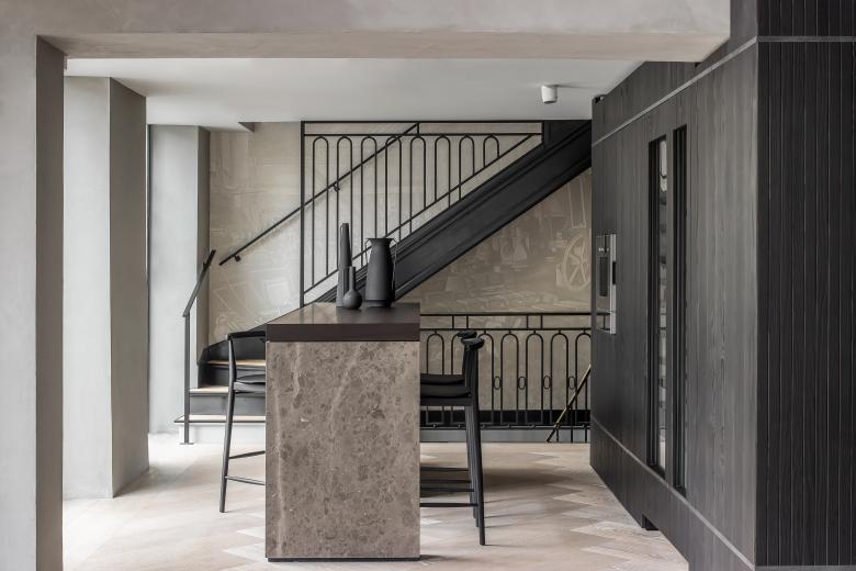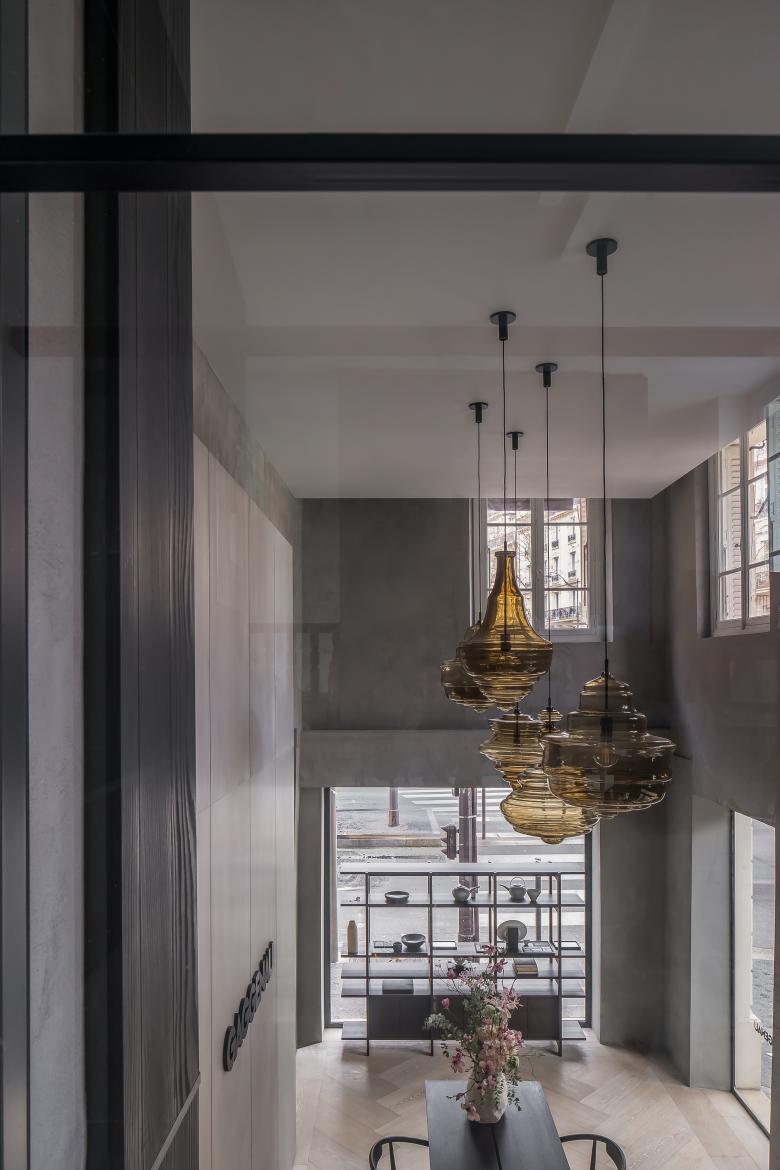 In a charming 18th century building on Boulevard Saint-Germain, history unfolds. Lightweight dome structures refer to France's advanced 19th century architecture. The wooden staircase with iron railings was restored to honour the Belle Epoque. Alongside it, a scenic toile displays the origins of Gaggenau, subtly interweaving the histories of brand and city.