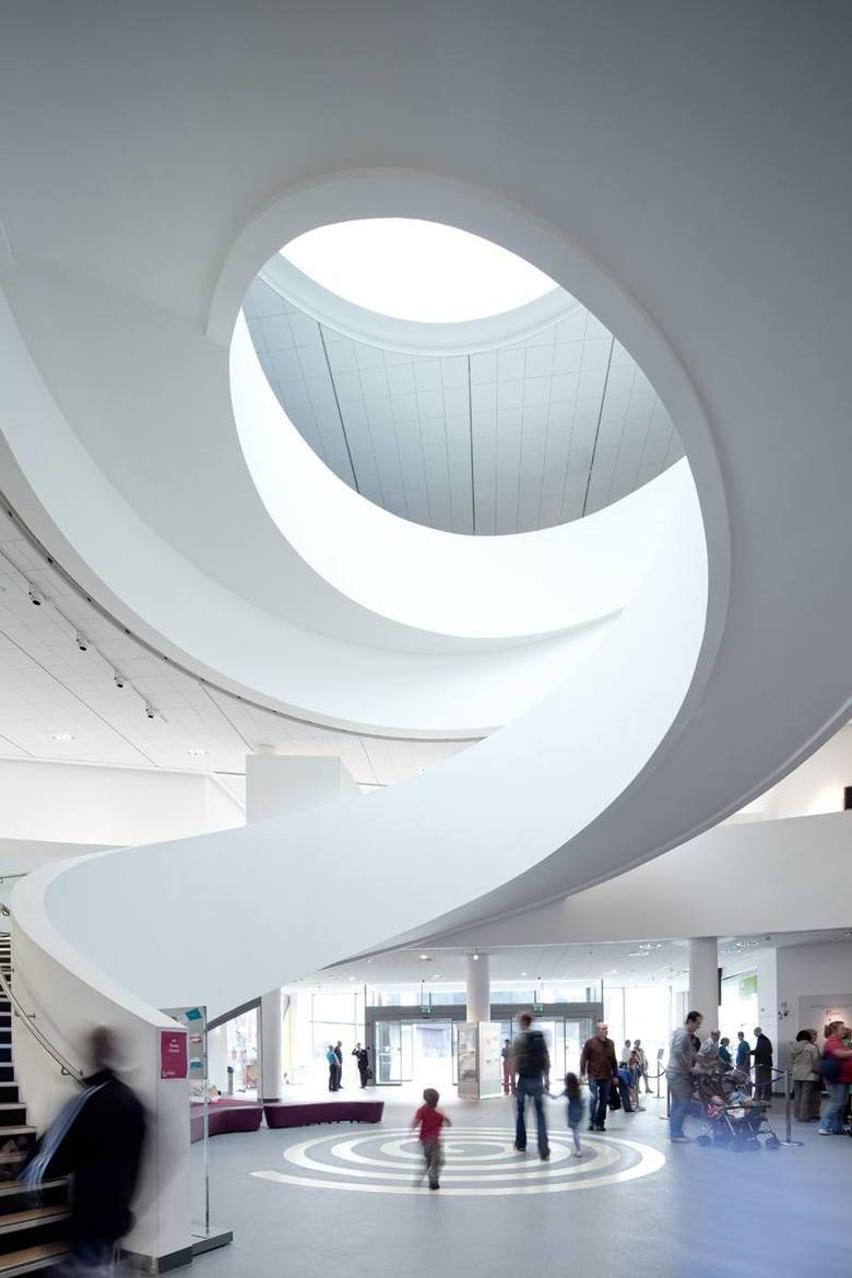 The outdoor areas around the Museum offer seating with views to the water adding to the dynamic urban environment and serving as a meeting point for locals and visitors alike. The theme is carried through into the Museum of Liverpool’s central atrium, with its sculptural sweeping staircase leading up to the galleries further encouraging social interaction.