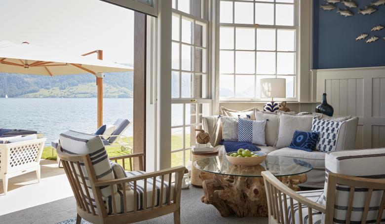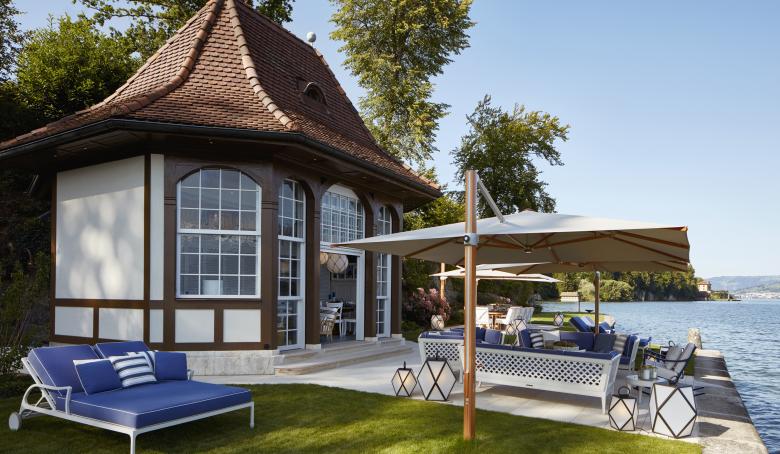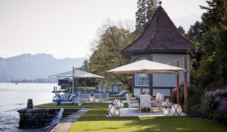 Ein hundert Jahre alter Badepavillon, etwas versteckt am Ufer des Vierwaldstättersees gelegen, wurde mit grossem Respekt vor dem Bestand saniert. Dafür wurden unter anderem neue Fenster eingebaut, die mit gezogenem Glas bestückt wurden, um ihre Ausstrahlung zu erhalten. Das Interior Design spielt mit der Idee des Aufenthalts am und auf dem Wasser. Dazu bekam der kleine Pavillon ein Maximum an Funktionalität, so wurden eine kleine Küche und ein Badezimmer eingebaut. Der Boden ist mit Zementfliesen belegt; klassisch-elegante Holzmöbel schaffen eine gemütliche und doch kosmopolitische Atmosphäre. Die Leuchten spielen mit der Idee des Bootshauses und eine Künstlerin aus der Region gestaltete die Wanddekoration, die Fische des Vierwaldstättersees zeigt.