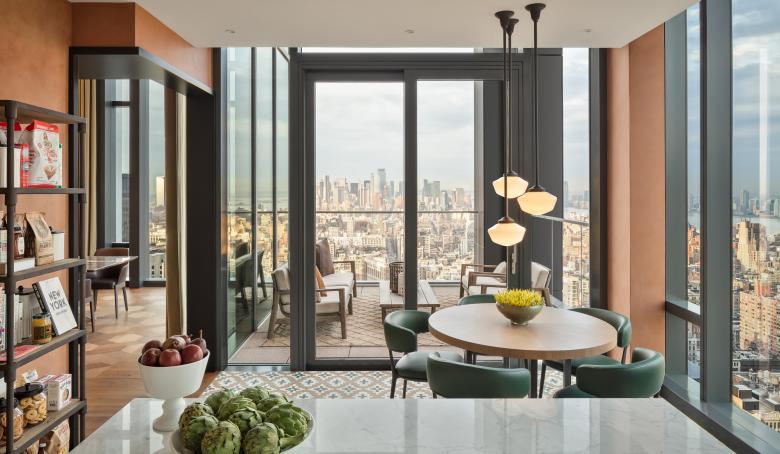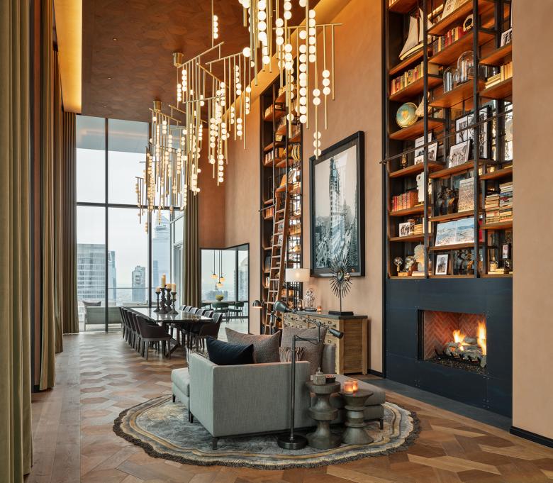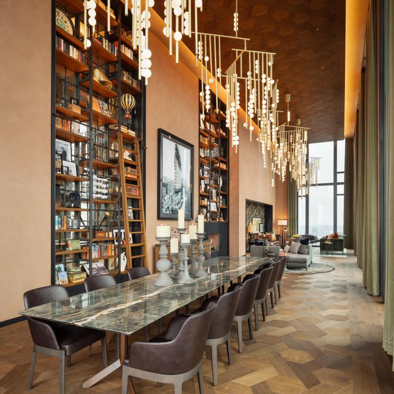Einen privaten Rückzugsort für Ferienaufenthalte im geschäftigen Manhattan – genau danach suchte das Bauherrenpaar für sich und seine erwachsenen Kinder. Für sie alle entstand im 52. Stock eines neu gebauten Hochhauses an der Fifth Avenue ein Zuhause auf Zeit, in dem das Zusammensein der Familie an allererster Stelle steht. Dafür wurde der Grundriss an die Anforderungen der Bauherrschaft angepasst. Alle Familienmitglieder geniessen bei ihren Aufenthalten in der Stadt die feinfühlige Mischung aus amerikanischer Grosszügigkeit und europäischer Eleganz. Jeder Raum erweist einem anderen Wahrzeichen New Yorks die Ehre – abgestimmt darauf, welche bauliche Ikone durch die raumhohen Fenster des jeweiligen Zimmers zu sehen ist. Unbestrittenes Highlight ist der Living Room mit seiner spektakulären Höhe, in dem sich die unverwechselbare Atmosphäre der Stadt spüren lässt.