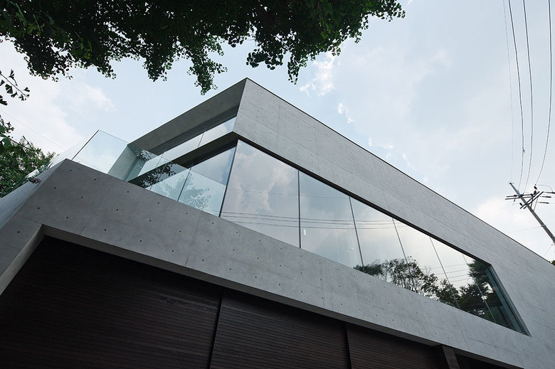 敷地のあるソウル市城北洞は由緒ある史跡等が点在する高級住宅街。北欧ヴィンテージ家具や現代美術の貿易会社からの依頼で自社家具と現代美術を融合させた住宅型旗艦店を日本人建築家による丁寧かつ大胆な設計が求められた。30%の建蔽率制限を最大利用し、外周をガラス窓とRC塀で囲うことでプライバシーや防犯性を高めた。内部空間には韓国伝統のマダン(庭)を大小4つ設けることで「中間領域」という小宇宙が生み出されている。家具や美術と調和する生活空間に求められたのは普遍的な意匠や心地よい余白であり、建築・デザインのみならず、変化と進化を遂げる韓国の歴史的エリアでの今後のライフスタイルを提示する役割も求められた。