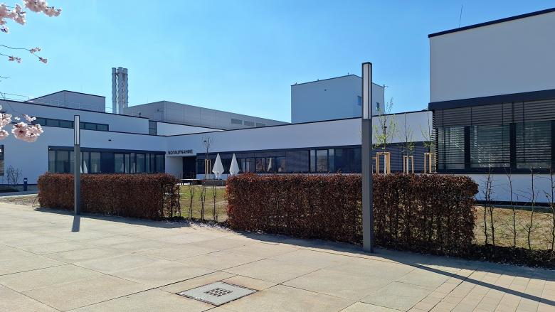 Der Übergang zum Bestandsgebäude erfolgt über den Erweiterungsbau für das Patienten-Service-Center.