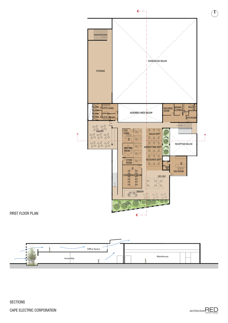 The Cape Electrical Corporation is an Industrial facility with its phase one proposed on a 2 acre property at Oragadam.  The building integrates both the management facility and the warehousing needs of the client.