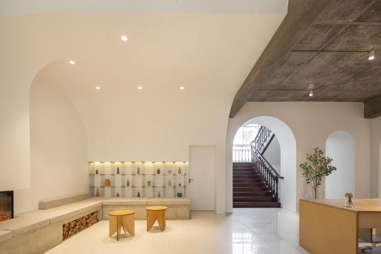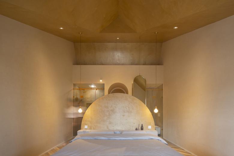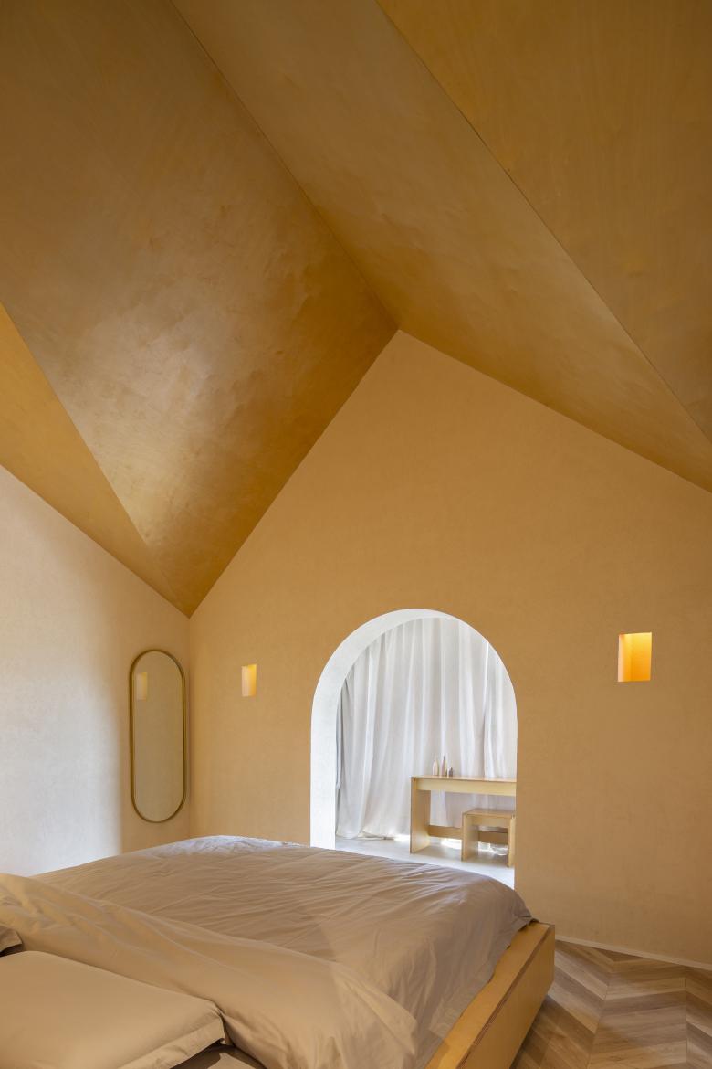 The project is located in a village near Disney in Pudong, Shanghai. The client commissioned Atelier d’More to transform a rural residential house into a boutique hotel with 10 rooms. The project consists of a three-storey building with two bungalows and a large courtyard, with a total construction area of 450㎡, which was originally used as residential buildings. The first floor is the living room, kitchen and one bedroom, each of the second and third floor has four rooms, one hall and two bathrooms. We retained the original layout of the first floor and converted the second and third floors into nine guest rooms with private bathrooms.
