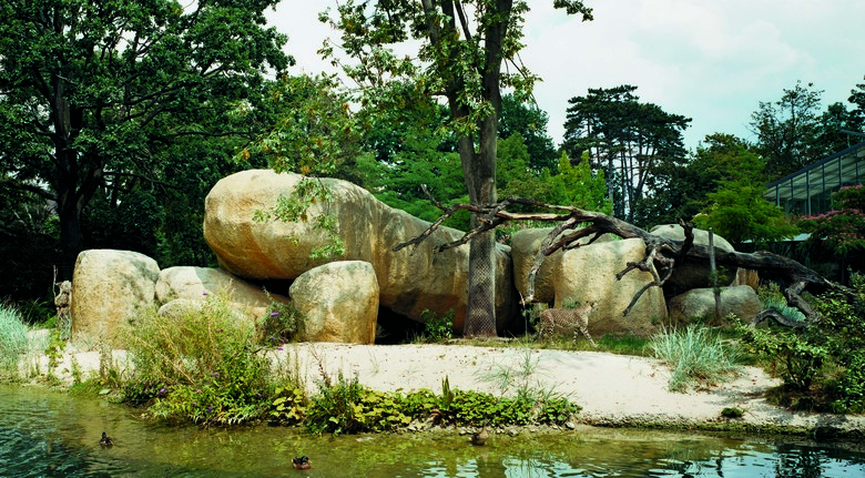 zum Gesamtbild eines Landschaftsraums zusammenwachsen. Der Besucher durchstreift die Landschaft und kann die panoramaartigen Anlagen mit den darin wohnenden Tieren auf eine natürliche Art erleben. Wo immer möglich wurden gitterlose Einblicke geschaffen.