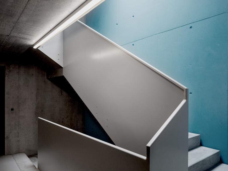 Die Wohnräume als auch die Schlafbereiche orientieren sich nach Süd-West, wohingegen die Treppenhäuser und die Nasszellen als Pufferzone gegen Nordosten hin ausgerichtet sind. Eine gleichmässige Abkantung der Fassade weitet den Blick zwischen den Punkthäusern hindurch.