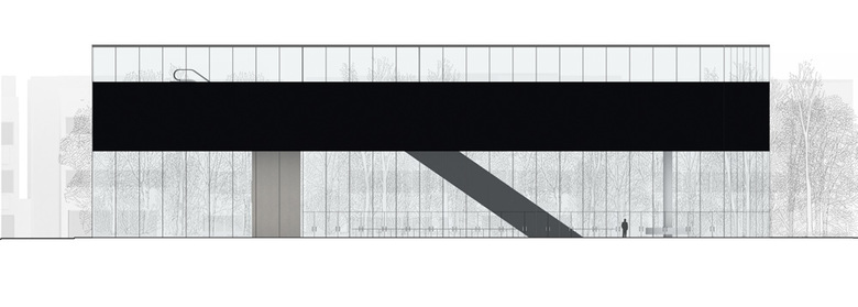 The project proposes to investigate this core paradox: public buildings simultaneously aspire to become noticeable urban monuments, firmly representing the collective values of a community, while being open and generous buildings. Based on this observation and the evolving nature of libraries, we tried to question the contemporary consensus that tends to arbitrarily mingle openness, transparency and publicness. Our design plays on and exhibits the dialectic between closed-massive-monumental-introverted and open-transparent-light-extroverted elements. This approach resulted in a somewhat straightforward architectural gesture: a black opaque volume floating within a glazed transparent box.