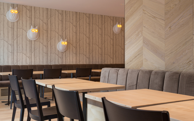 Das neue Erscheinungsbild des Restaurant Untertor in Willisau spielt mit frechen Akzenten und aussergewöhnlichen Farben und bringt damit frischen Wind in die klassische Gastro-Szene von Willisau. Eulen, tanzend angeordnete Leuchten und getönte Spiegel verleihen dem Konzept ein humorvolles Augenzwinkern. Sattes Nachtblau und warmes Dunkelrosé schaffen einen spannenden Kontrast zu den vielen hellen Naturtönen. Das Chevron-Muster der Holz-Wandverkleidung findet sich in den Fliesen im Buffetbereich wieder. Das moderne Konzept wirkt mit den Eulen als wäre es einem Geschichtenbuch entsprungen.