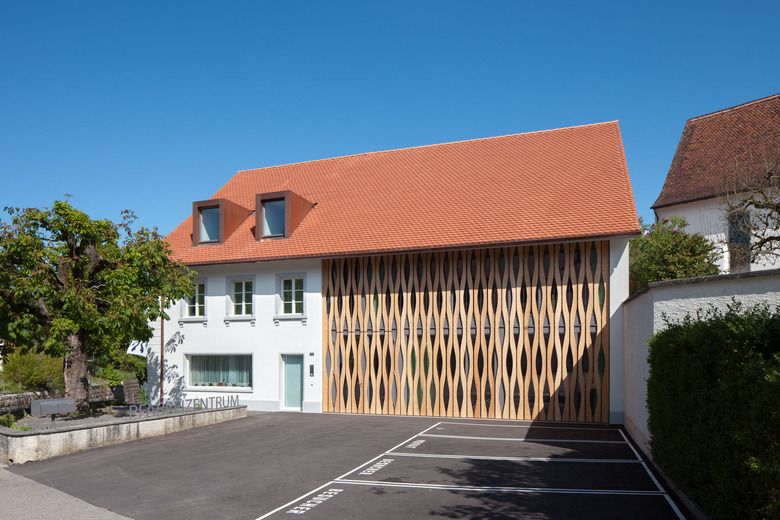 Das ehemalige Bauernhaus aus dem 19. Jahrhundert steht mit seiner östlichen Fassade direkt an der historischen Kirchenmauer und bietet optimale Voraussetzungen, das Kirchenareal als Pfarreizentrum zu ergänzen. Das Raumprogramm umfasst einen 90 m2 grossen Pfarreisaal mit Küche und Lagerraum, einen Sitzungsraum, Lokalitäten für die Jubla, Büros und eine Wohnung.