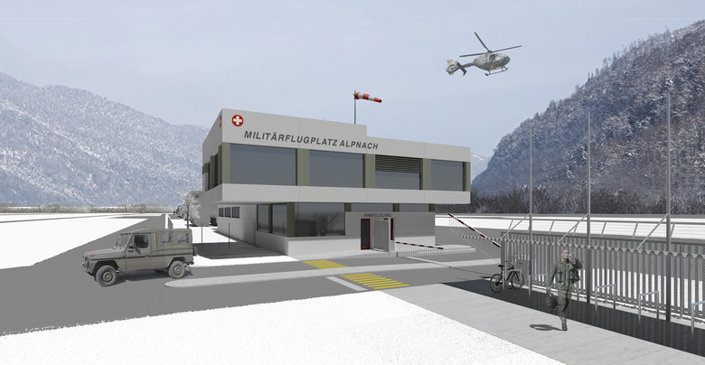 2017 Neubau, Loge und Empfang Flpl Alpnach, eingeladener Projektwettbewerb, 1. Rang