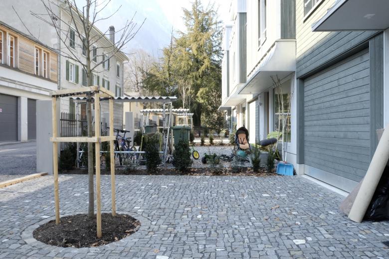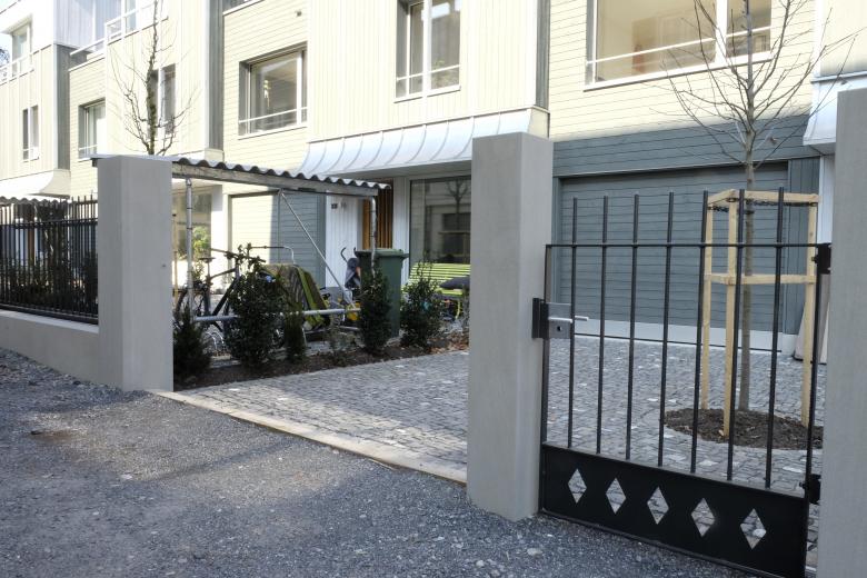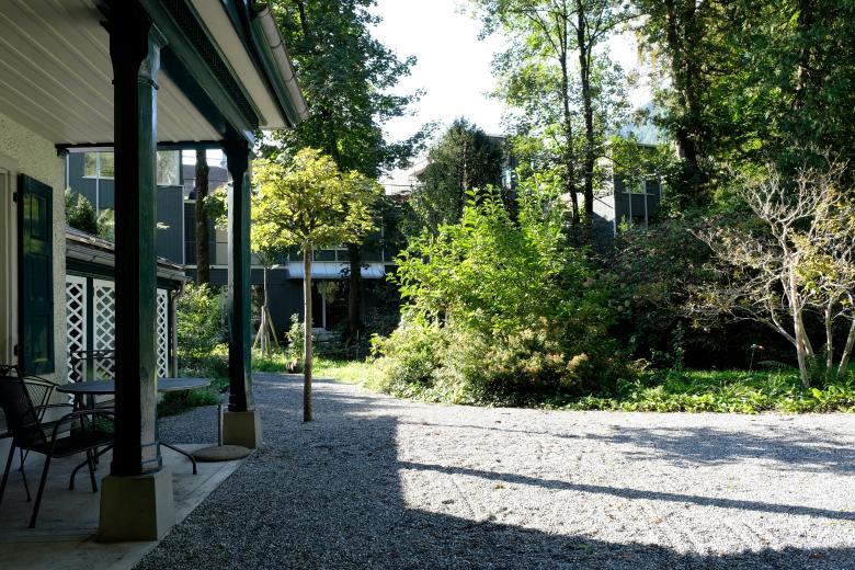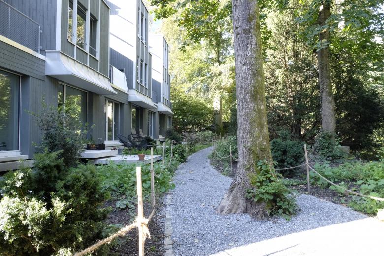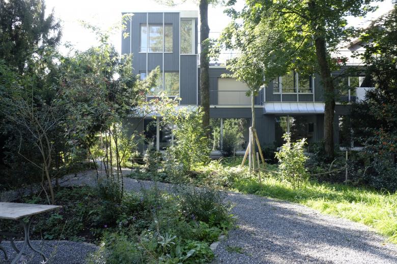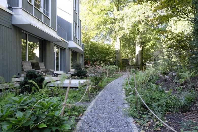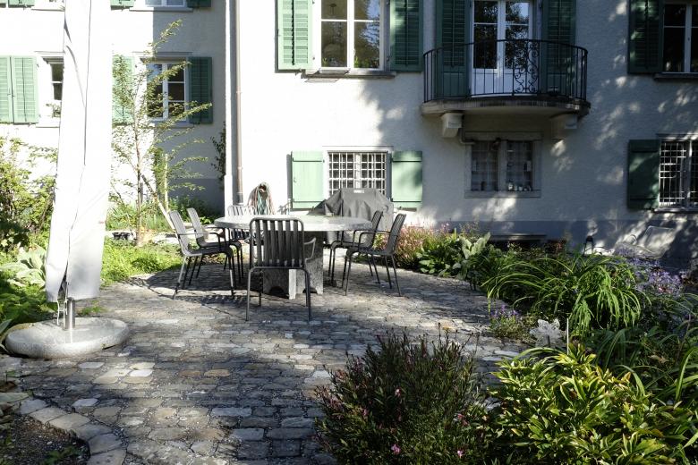 Durch die subtile Setzung der Neubauten am Südrand des historischen Gartens konnte dessen Substanz zu einem grossen Teil erhalten werden. So vermag der Garten trotz verminderter Fläche ein Gefäss zu bilden, welches den fünf Familien ein zuhause ist.
