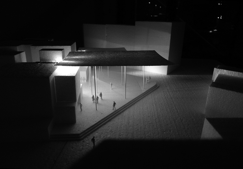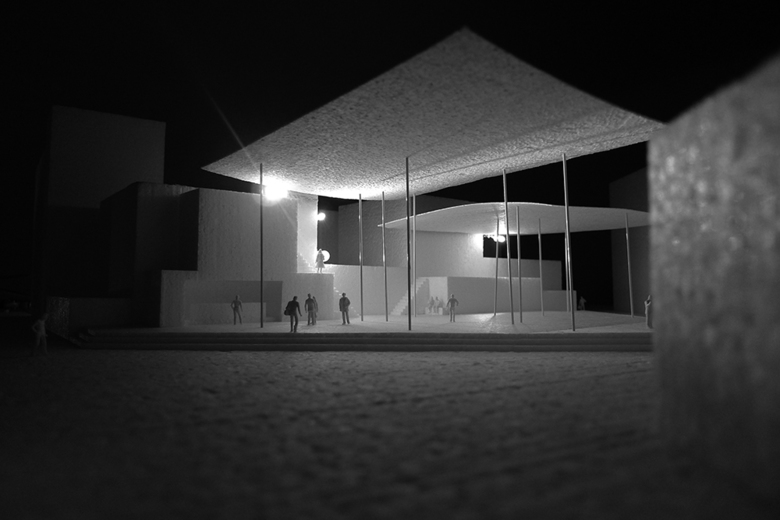 "It's October, when the light leaves the city in the early evening particularly white. I leave the floating mosque towards the city, where I discover a slightly elevated space on the edge of the Medina. It is as if it had been here forever. Scents are in the air. A group of older men enjoying their tea in front of the stepped wall and comment amused the buzz in the marketplace. A roof like something from another world turns the place into gold vivid light. Over a narrow staircase I climb the terrace and feel completely part of space and light - part of Casablanca."