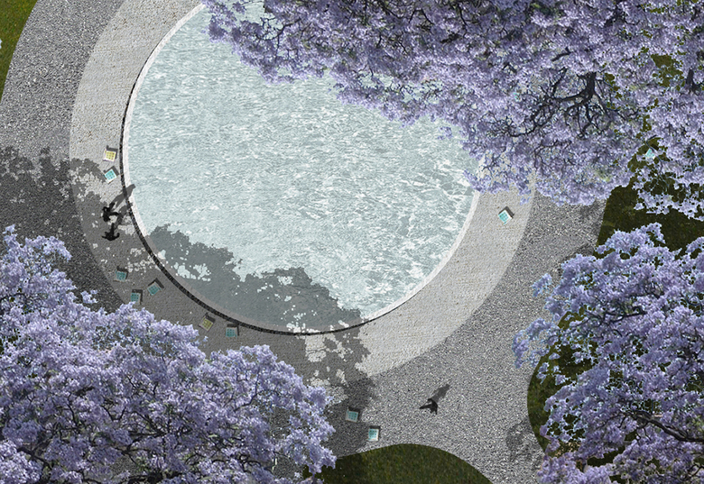 Die bauliche Substanz des bestehenden Parks vermag das Potential des Ortes nicht auszuschöpfen und soll durch gezielte Eingriffe ergänzt werden. Dem Gegenüber steht der Bestand an Gehölzen. Besonders die wenigen Blauglockenbäume (Paulownia tomentosa) beeindrucken mit ihrer Präsenz durch Wuchs und die blauen Glockenblüten. Entsprechend sollen weitere dieser malerischen Parkbäume gepflanzt werden und zusammen mit dem Laub der zusätzlichen Silberweiden mit der Wasserfläche in Wechselwirkung treten.