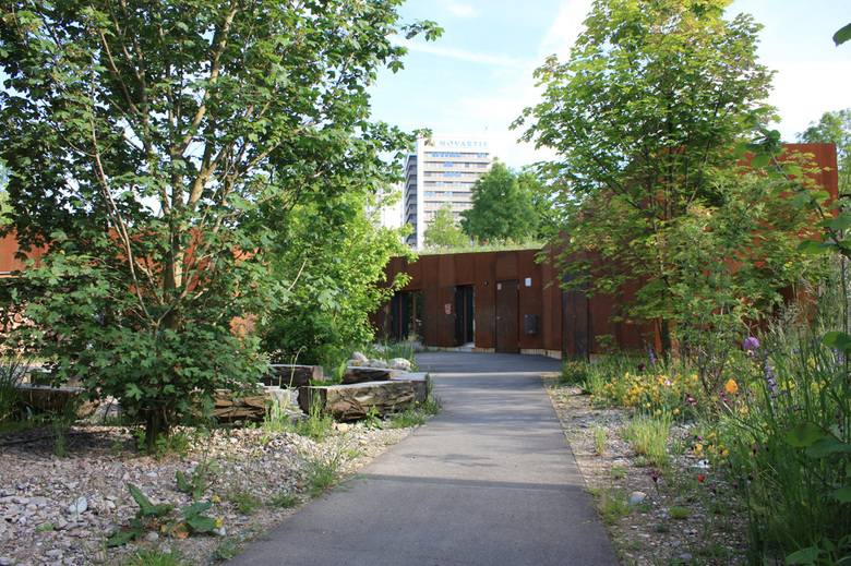 Der Park erfährt eine Neuordnung: Der bestehende, beschränkt offene Robi-Spielplatz wird vom östlichen in den südlichen Teil verlegt. Entlang der verkehrsberuhigten Voltastrasse bildet das eingezäunte Gelände des Robi-Spielplatzes einen transparenten Abschluss der Anlage. Die vorhandenen, unterschiedlichen Kleinbauten werden als Gebäudeensemble neu erstellt wird. Im Hauptgebäudes wird eine Buvette und das WC untergebracht. Die Buvette in der westlichen Kopfseite stellt durch ihre Position zwischen Park und Voltaplatz und ihrem Angebot ein Treffpunkt dar. Daneben markiert sie den Eingang und erinnert an das Limonadenhäuschen aus den Anfängen der Anlage.