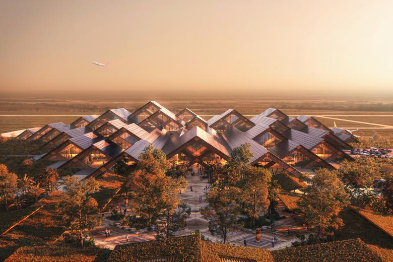 Bhutan’s second international airport, the Gelephu International Airport is strategically positioned near the Bhutan-Indian border and the Paitha River, surrounded by Bhutan’s lush subtropical forests, mountains, and rivers. Spanning 68,000 m2, the airport is a collaboration with aviation engineering firm NACO and an integral part of the Gelephu Mindfulness City (GMC) masterplan designed by BIG, Arup, and Cistri. With the capacity to handle 123 flights daily, the airport is projected to welcome 1.3 million passengers annually by 2040, increasing to 5.5 million passengers by 2065. An installation at Venice Architecture Biennale 2025 will feature a timber diamond piece reflecting the airport’s façade. Sculpted in real time, half by a Bhutanese artist, and half by machine, the exhibit merges tradition with innovation, celebrating Bhutan’s wood carving heritage while exploring technology’s role in preserving and advancing the craft.
