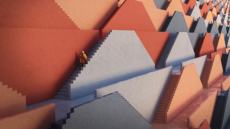 The final bridge, a hydroelectric dam, will be constructed on the city’s western border with a step-well retaining wall that offers viewpoints, staircases for meditative walks, and a temple. Visitors and pilgrims can ascend and descend along countless individual routes to the visitor center and temple nested on the face of the manmade cliff. The Sankosh Temple-Dam embodies in architectural form all the foundational elements of Gelephu: the harmonious coexistence of culture and nature, conceived as a hybrid child of Bhutan’s rich past heritage and its prosperous future legacy.