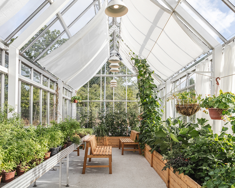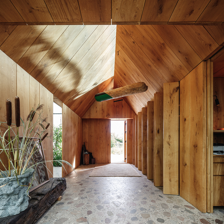 The 40-cover dining room and adjacent private dining room are made of stacked timber planks that resemble neatly piled wood at a lumber yard. A large skylight and an expansive set of windows that slide to reveal the outdoor permagarden allow guests to truly sense all of the seasons and the restaurant’s natural surrounds. Outside, the restaurant’s three greenhouses are used as a garden, test kitchen and bakery.