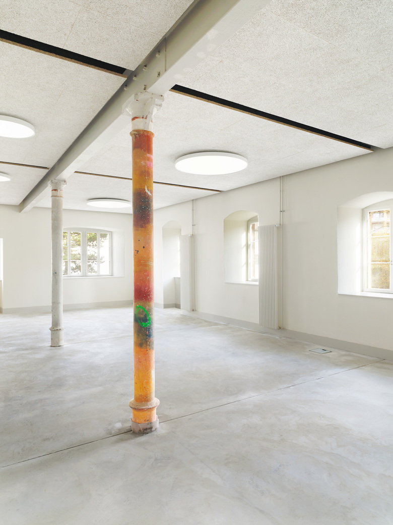 Aufgrund ihrer historischen Bedeutung, ihres stattlichen Erscheinungsbildes sowie ihrer vielseitigen räumlichen Möglichkeiten wird die ehemalige Papiermühle der Öffentlichkeit zugänglich gemacht und zu einem lebendigen Treffpunkt für die Bevölkerung der angrenzenden Wohnquartiere umgestaltet. Die architektonischen Eingriffe konzentrieren sich weitgehend auf den Erhalt der historisch schützenswerten Bausubstanz und die Stärkung der bestehenden räumlichen Qualitäten. Die 1604 erbaute Mühle bleibt in ihrem bestehenden Volumen weitgehend erhalten. Im Innern entstehen durch die Entfernung der Wohnungstrennwände aus den 1950er Jahren und der Freilegung der historischen Haupttragstruktur überraschend grosszügige Räume. Mit der Aufhebung des Estrichgeschosses wird die Ambiance des ehemaligen Trocknungsraumes im Dachgeschoss wiederhergestellt. Die charakteristische kaskadierende Treppe bleibt dabei weiterhin Haupterschliessung und Rückgrat des Hauses. Minimale Eingriffe in die Gebäudestruktur, objektverträgliche Nutzungen sowie ein einfacher Ausbaustandard ermöglichen ein sinnvolles Kosten-Nutzen-Verhältnis.