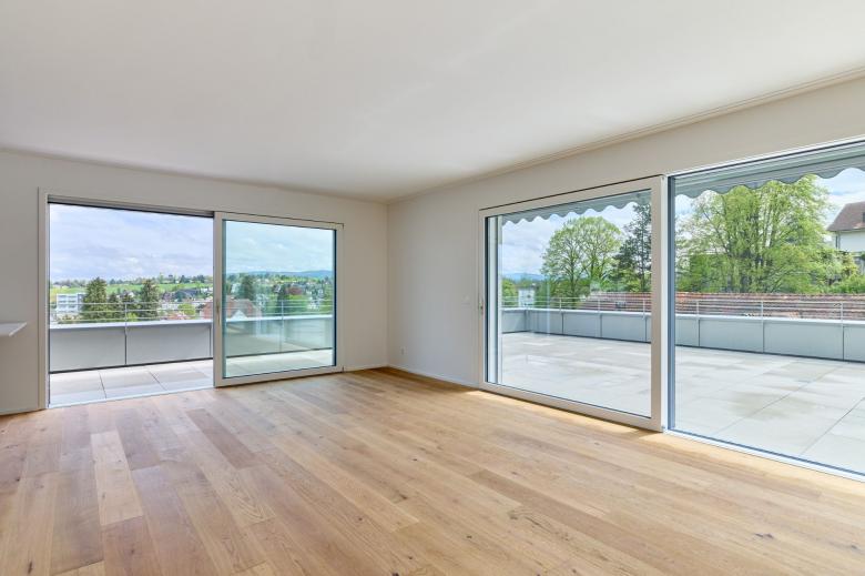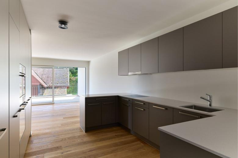 Die Wohnungen im Erdgeschoss und ersten Obergeschoss sind identisch gestaltet: offene, helle Wohn- und Essbereiche mit stilvollen Küchen, zwei separate Zimmer sowie Gartensitzplatz und Balkone mit Blick ins Grüne....