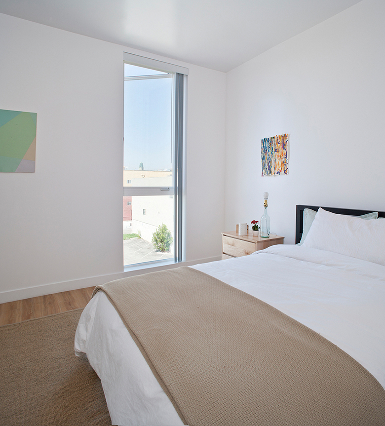 The SIX is a 52-unit LEED Platinum affordable housing project that provides a home, support services and rehabilitation for previously homeless and/or disabled veterans. It is located in the MacArthur Park area of Los Angeles. McArthur Park has one of the highest densities in the USA with over 38,000 people per square mile and a total population of 120,000 people in 2.72 square miles.