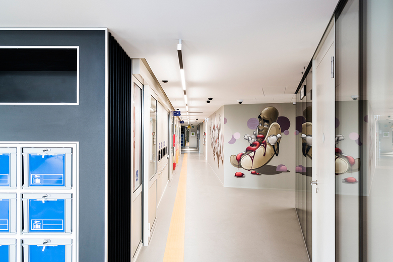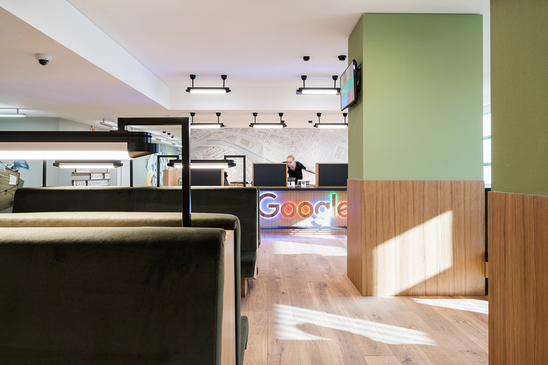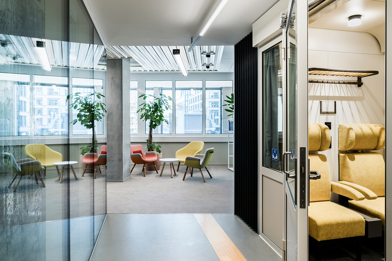 Das Bürogebäude G an der Zürcher Europaallee wird wie viele der neuen Bürogebäude von einem internationalen IT-Grosskonzern genutzt. Das Thema der 7000m2 Räumlichkeiten ist die Zugreise. Verteilt auf alle Bürogeschosse sind Restaurants, Seminarräume, Sitzungszimmer, Fitness, Kino und Grossraumbüros mit Themen bekannter europäischen Städten.