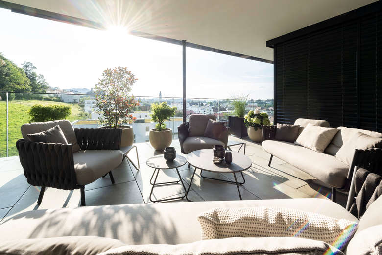 Die Penthouse Wohnung bietet urbanen Luxus auf höchstem Niveau. Der grosszügige Eingangsbereich heisst die Bewohner willkommen und führt sie hin zum lichtdurchfluteten Wohn- und Essbereich. Ein auf Mass fertiggestelltes Möbeldesign, schöne Textile und kleine Details, stehen stellvertretend für einen hochwertigen Innenausbau. Die neue Küche ist funktional und elegant in den Wohnbereich eingebaut. In der gemütlichen Smoker Lounge, finden genussorientierte Zigarrenraucher das passende Glas Wein dazu. Italienischer Naturstein kombiniert mit modernen Möbeldesign verleihen dem Badezimmer eine zeitlose Eleganz. Das Penthouse zeigt eine moderne Art zu leben auf, bei der man sich gleich wie zu Hause fühlt.