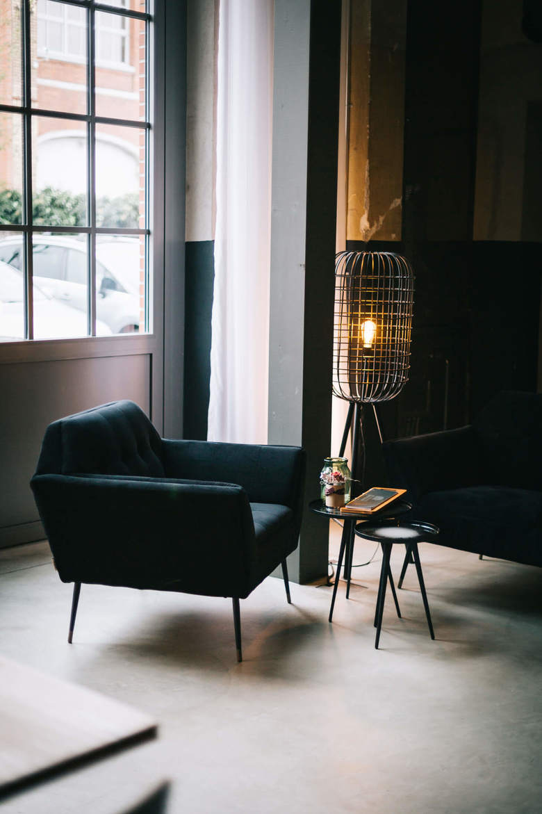 Als weichen Kontrast zu der harten Ehrlichkeit dieser durch das Gebäude geforderten Materialien, wird warmes Leder in Kombination mit textilen Details eingesetzt.