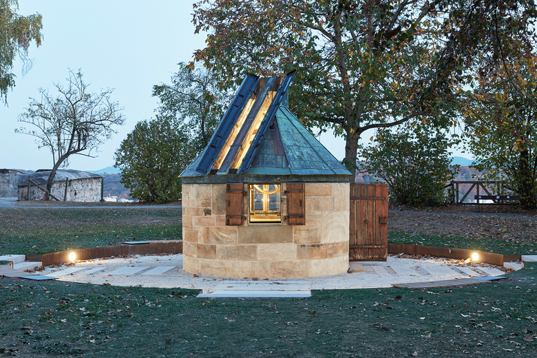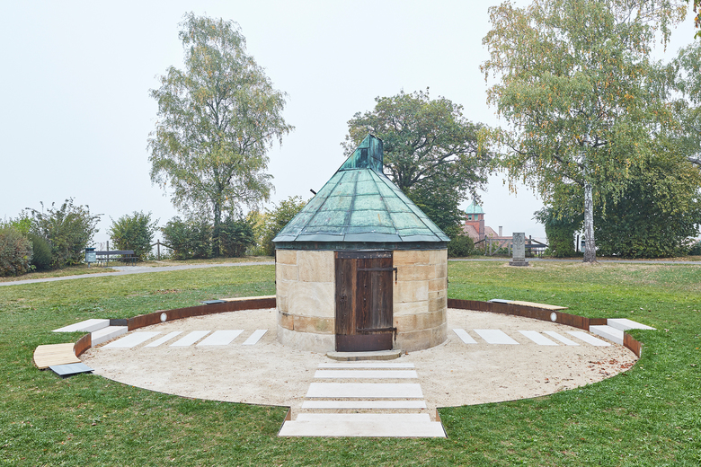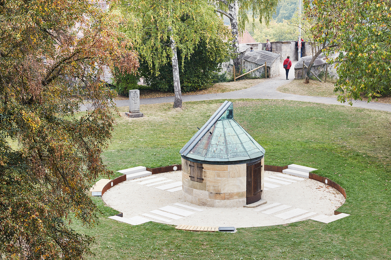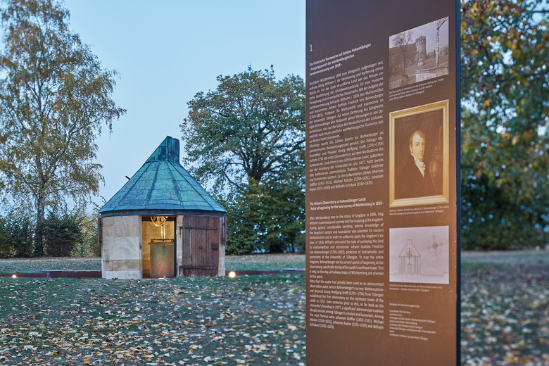 Bei dem kleinen, massiv gemauerten Rundbau aus Sandstein handelt es sich um ein ehemaliges Observatorium auf der Ostbastion des Schlosses Hohentübingen, welches zur Landesvermessung genutzt wurde. Die Brutto Grundfläche beträgt gerade einmal 8,81m², die Netto Grundfläche des Innenraums beträgt 5,73m².