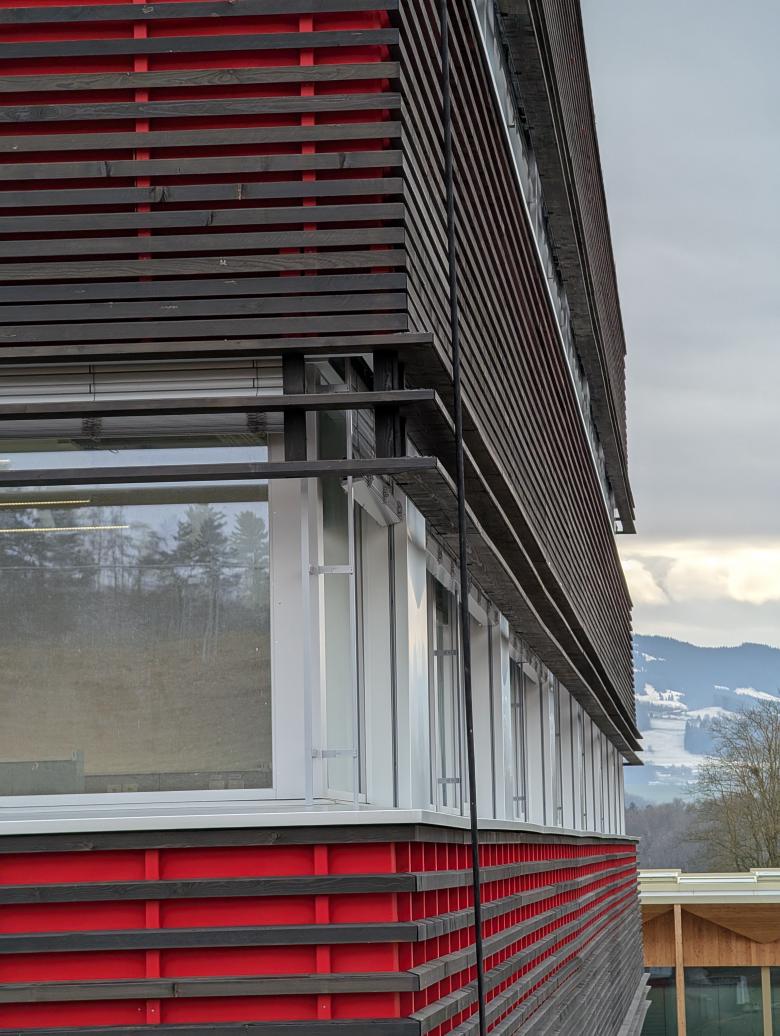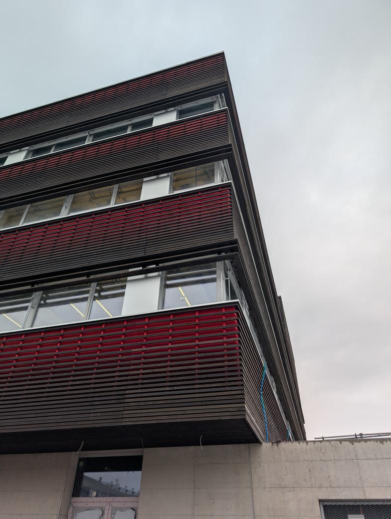 Von aussen ist der Neubau beinahe fertig. Im Inneren muss noch die maximal komprimierte Haustechnik- und Laborinstallation ausgeführt werden.