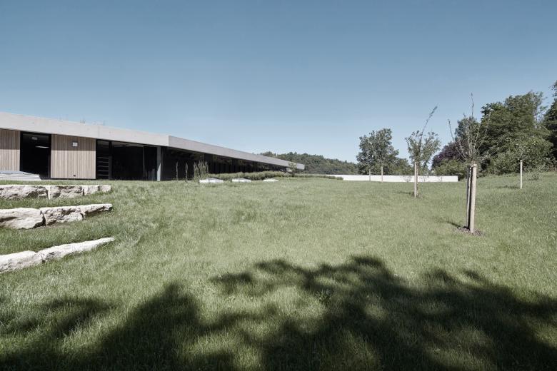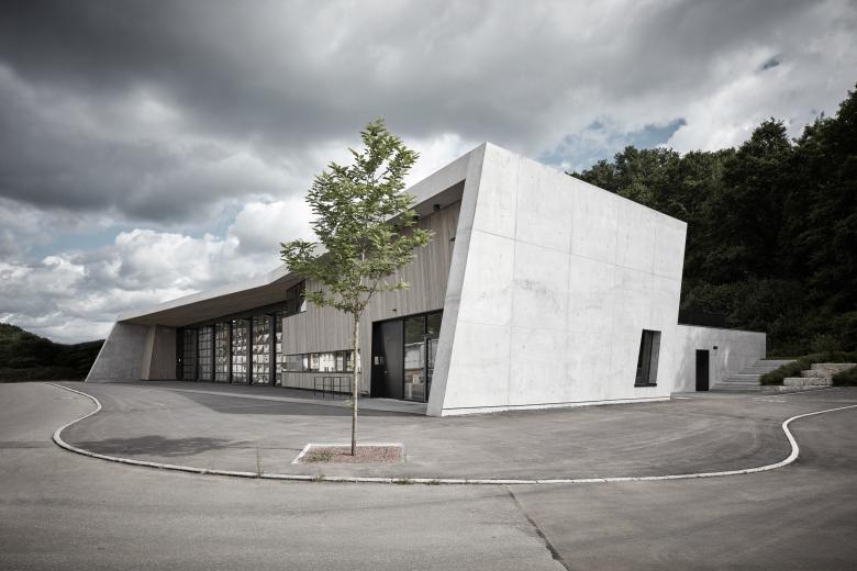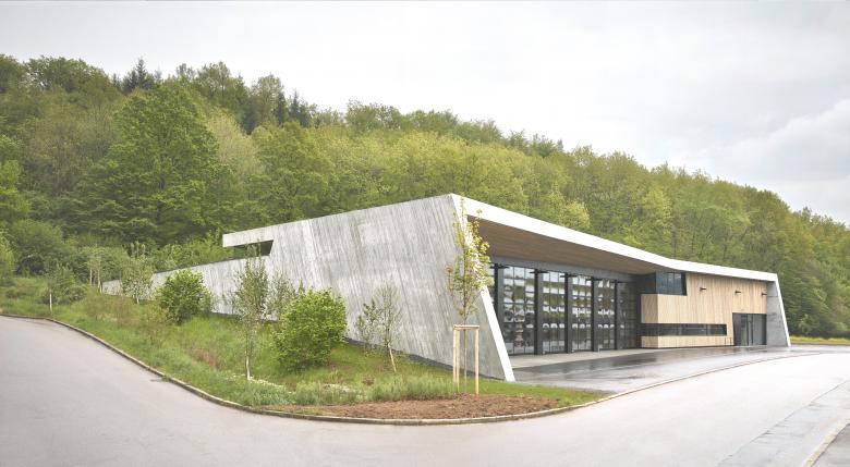 Der Neubau der Freiwilligen Feuerwehr Wannweil steht am Rand eines Gewerbegebietes auf einem Wiesengrundstück in unmittelbarer Nähe zum Waldrand. Der hier einzuhaltende Abstand von 30 m sowie die innere Organisation des Gebäudes haben einen dynamisch-expressiv geformten zwei-geschossigen Baukörper entstehen lassen, der sich in die ansteigende Topografie eingräbt und verankert.