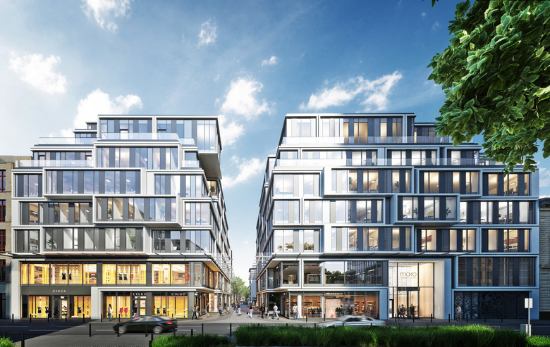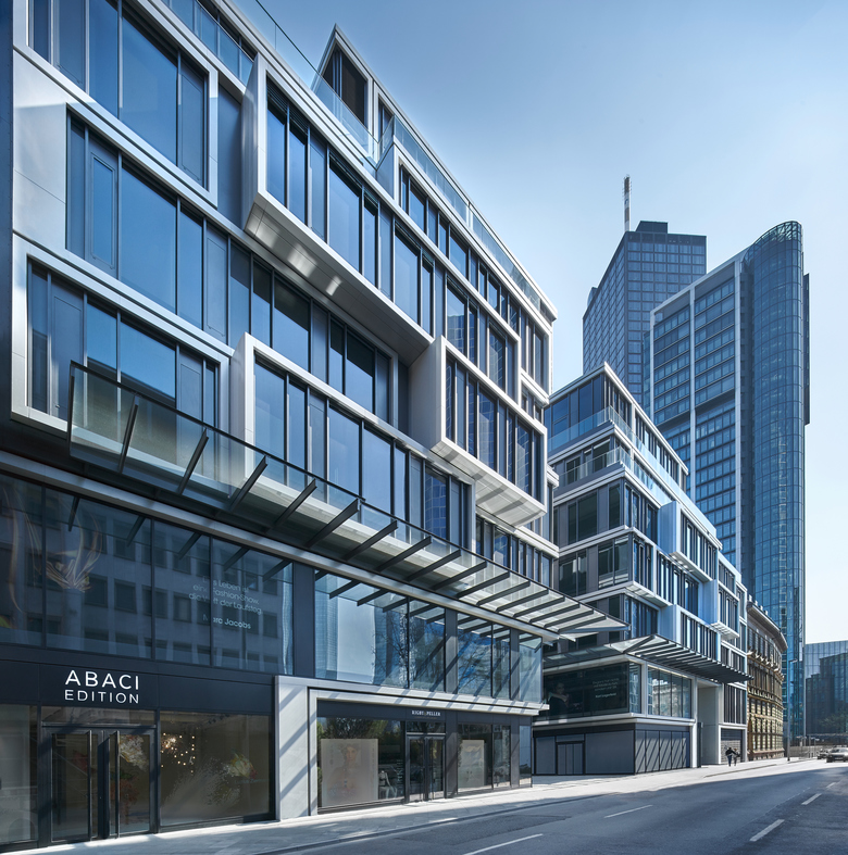 Die beiden Büro- und Geschäftshäuser mit der Adresse Neue Mainzer Straße 74 und 80 markieren den Eingang zur Neuen Rothofstraße, die parallel zur ersten Einkaufsadresse Frankfurts, der Goethestraße, verläuft.